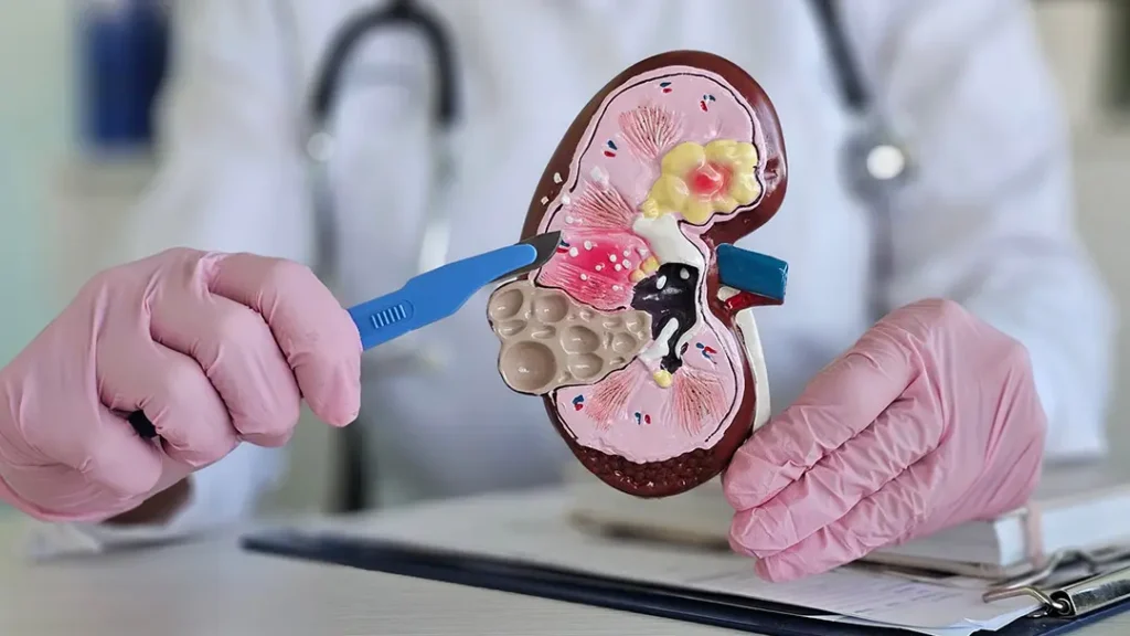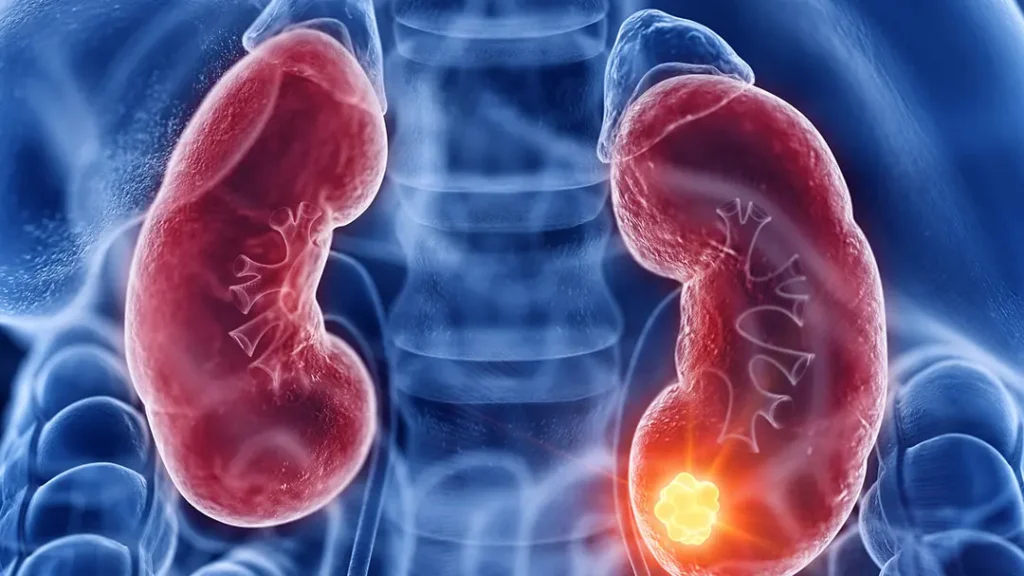 O câncer de rim se origina nos túbulos renais — estruturas responsáveis por filtrar o sangue e formar a urina. Ele ocorre quando as células dessa região começam a se multiplicar de forma desordenada, formando um tumor.
